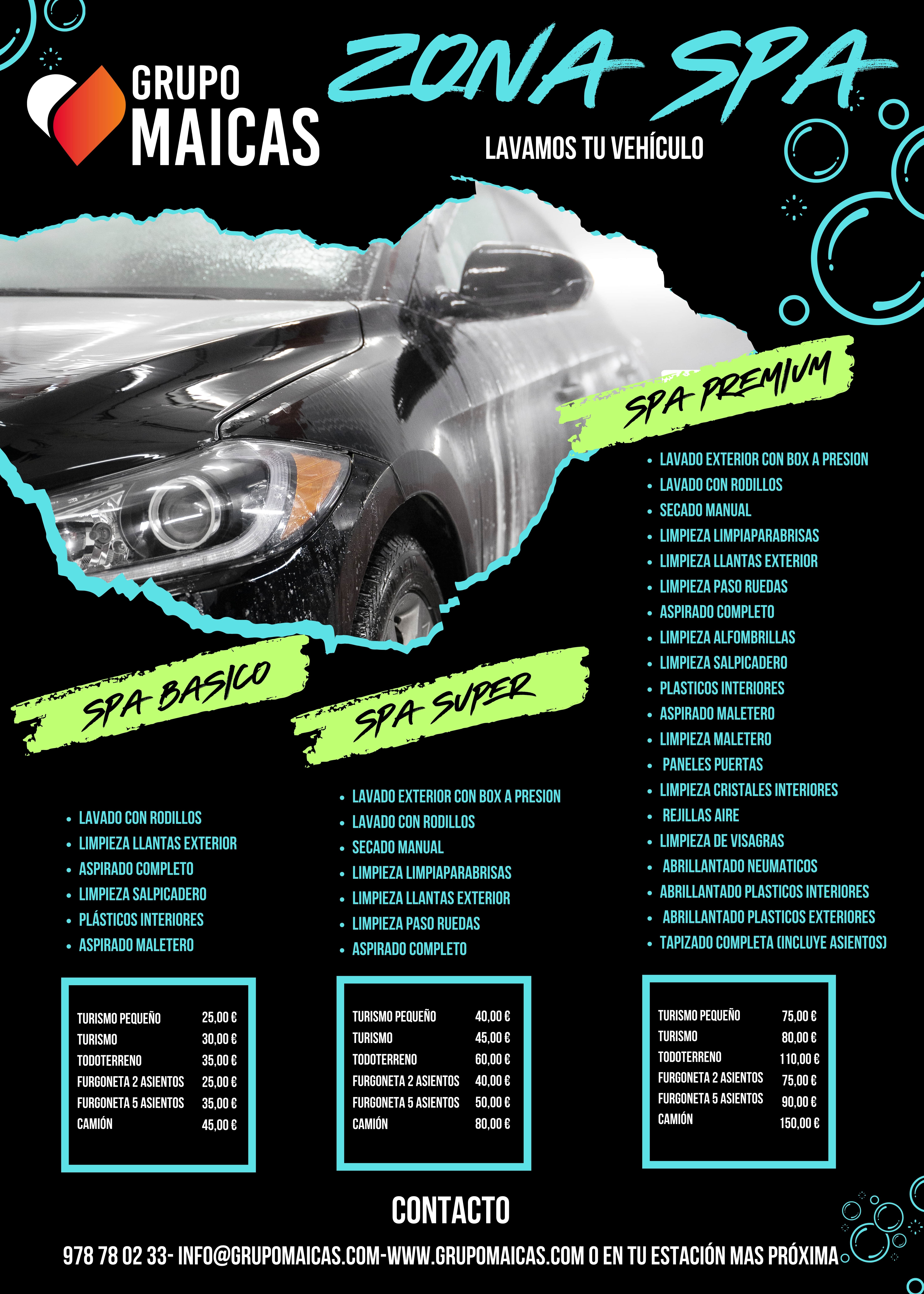 Revisa aquí abajo las características de nuestros servicios que se divide en 3: básico, super y premium, y recuerda, nuestro servicio es rápido y eficiente, para que pueda volver a la carretera en poco tiempo. ¡Pide cita y dale a tu coche el cuidado que se merece!